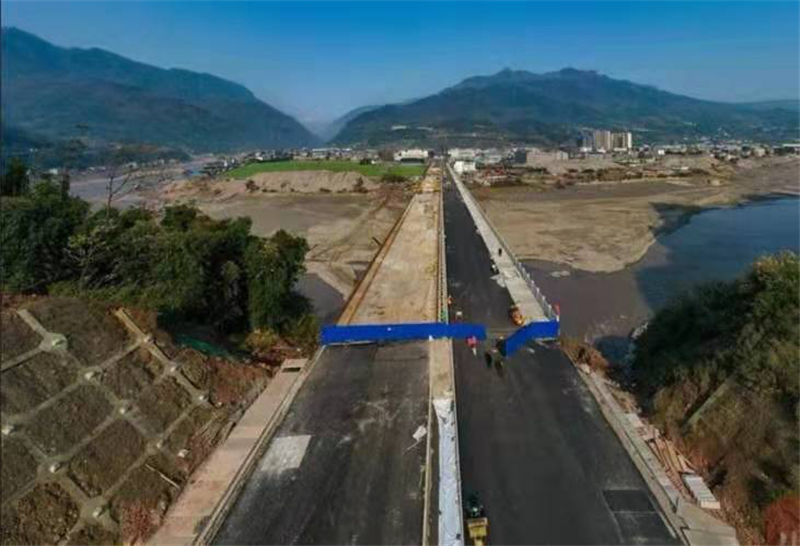 12月24日,雅安多營青衣江大橋已貫通的半幅橋面和兩端引道已完成路面鋪設(shè)和護(hù)欄安裝,另半幅橋面完成澆筑,開始橋面鋪設(shè),大橋即將