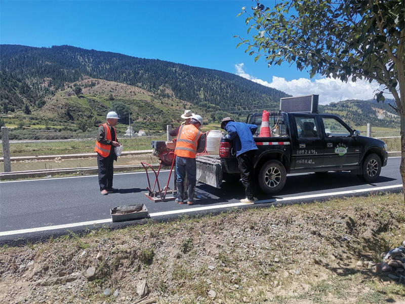 經(jīng)過5天4夜連續(xù)奮戰(zhàn),檢測小組克服高海拔、缺氧、寒冷等困難,完成捧塔鄉(xiāng)至兩河口資源公路、熱柯大橋、澤木橋等12個扶貧檢測項目,累計檢測里程達311.7公里,抽檢了路面厚度、路面強度、梁板強度、波形護欄鍍鋅層厚度、立柱壁厚等數(shù)十個參數(shù),圓滿完成了本次扶貧幫扶檢測任務。