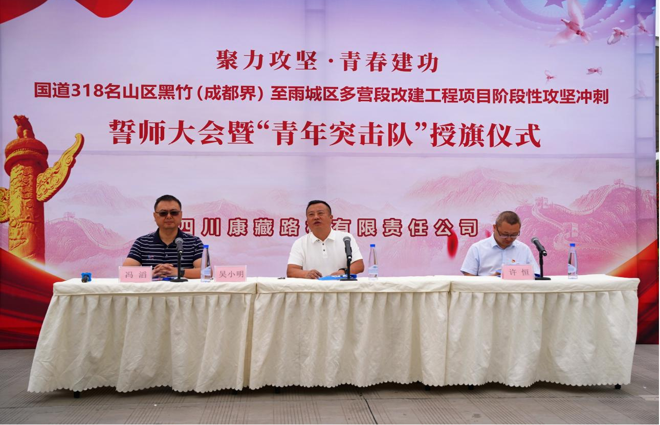 為調(diào)動(dòng)奮戰(zhàn)熱情,凝聚青年力量,5月15日,康藏路橋公司召開國道318改建工程“聚力攻堅(jiān) 青春建功”誓師大會(huì)暨青年突擊隊(duì)授旗儀式,全面吹響項(xiàng)目階段性攻堅(jiān)沖鋒號(hào)。公司領(lǐng)導(dǎo)班子、項(xiàng)目管理人員及青年骨干代表共計(jì)60余人參加活動(dòng)。