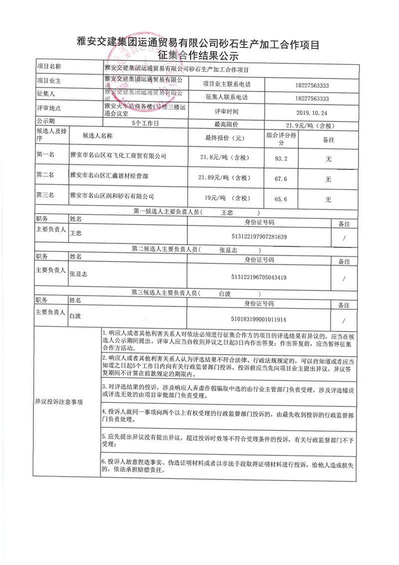 雅安交建集團運通貿易有限公司砂石生產加工合作項目征集合作結果公示