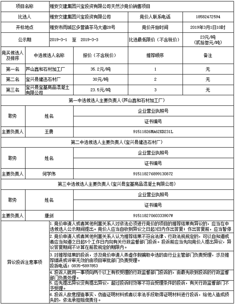 雅安交建集團(tuán)興寶投資有限公司天然沙競(jìng)價(jià)銷售項(xiàng)目公示