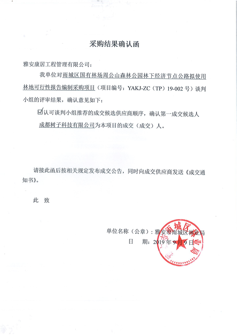 雅安市雨城區(qū)林業(yè)局雨城區(qū)國有林場周公山森林公園林下經(jīng)濟節(jié)點公路擬使用林地可行性報告編制采購項目競爭性談判結(jié)果公示