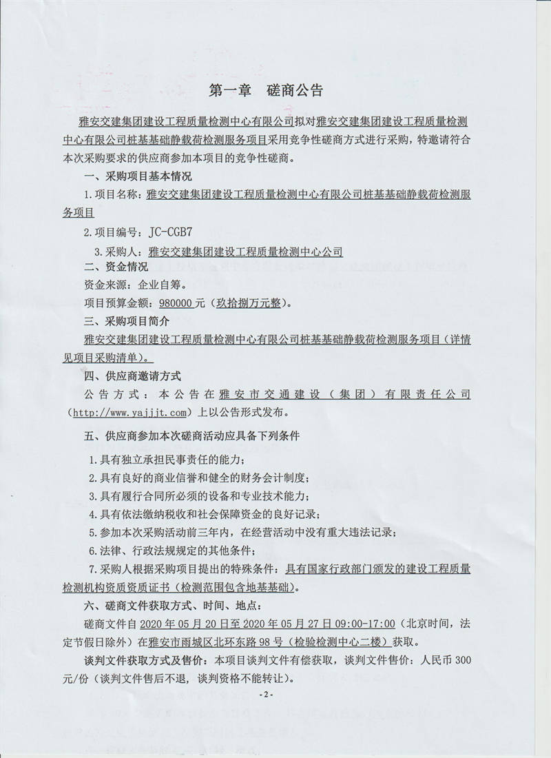 雅安交建集團(tuán)建設(shè)工程質(zhì)量檢測中心有限公司樁基基礎(chǔ)靜載荷檢測服務(wù)采購項(xiàng)目競爭性磋商公告
