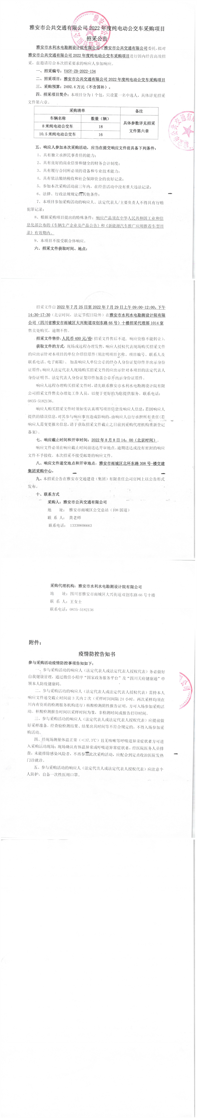 雅安市公共交通有限公司2022年度純電動公交車采購項(xiàng)目招采公告