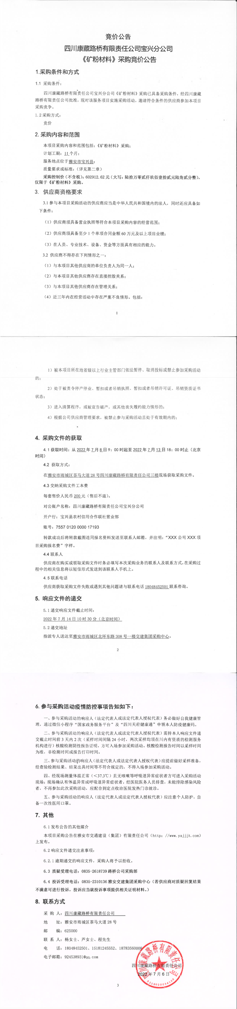 四川康藏路橋有限責(zé)任公司寶興分公司乳化劑材料采購競價公告