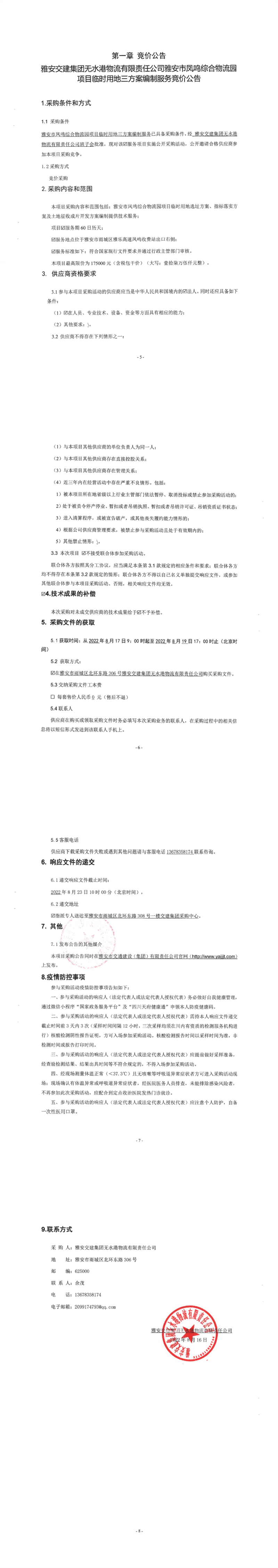 雅安交建集團(tuán)無(wú)水港物流有限責(zé)任公司雅安市鳳鳴綜合物流園項(xiàng)目臨時(shí)用地三方案編制服務(wù)競(jìng)價(jià)公告