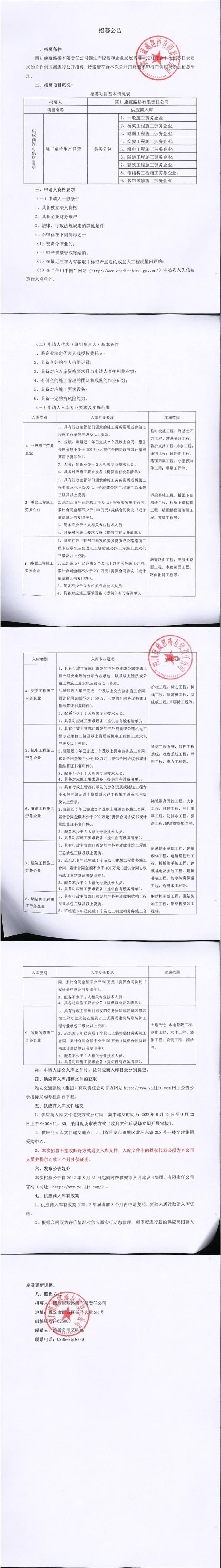四川康藏路橋有限責(zé)任公司2022年第三季度供應(yīng)商入庫招募文件(點擊自行下載)