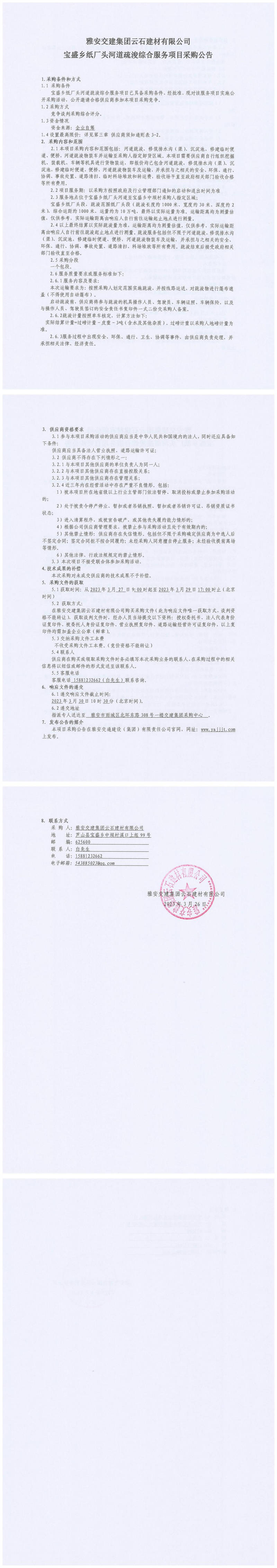 雅安交建集團(tuán)云石建材有限公司太平鎮(zhèn)祥和村河道疏浚綜合服務(wù)項目采購公告