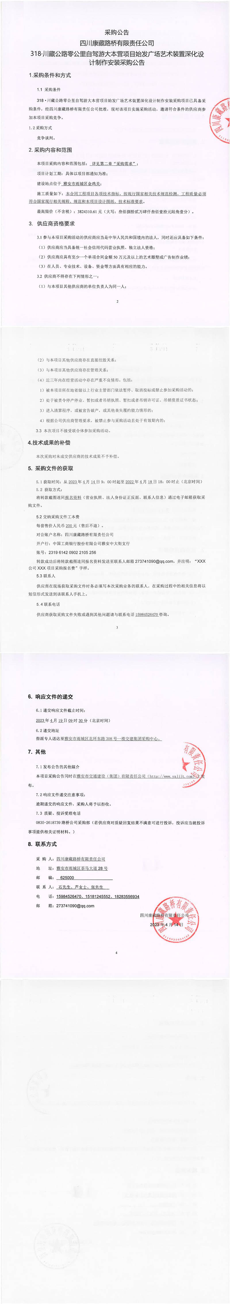 四川康藏路橋有限責(zé)任公司318·川藏公路零公里自駕游大本營(yíng)項(xiàng)目始發(fā)廣場(chǎng)藝術(shù)裝置深化設(shè)計(jì)制作安裝采購(gòu)公告