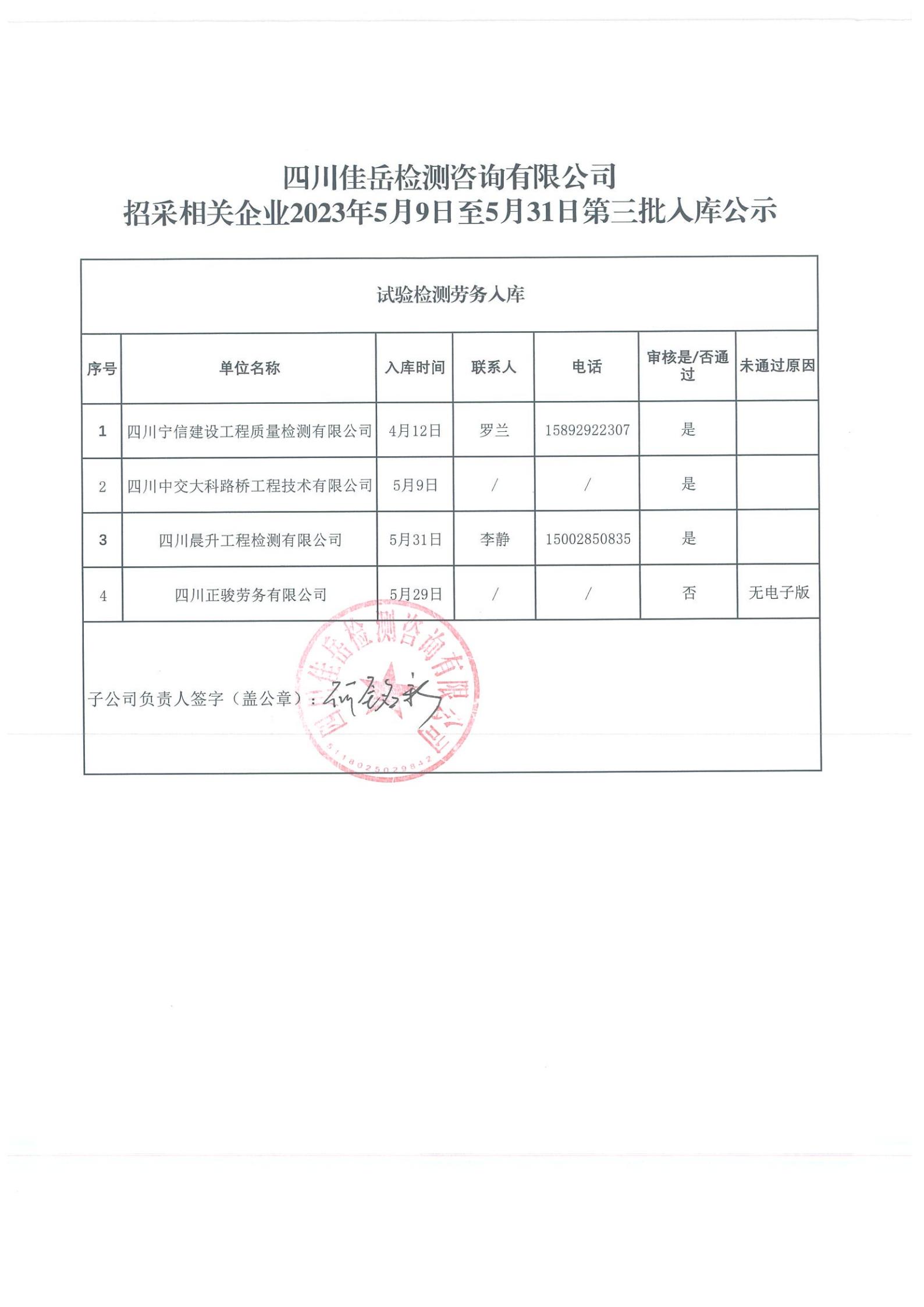 四川佳岳檢測咨詢有限公司(試驗檢測勞務供應商庫)2023年5月9日至5月31日第三批入庫結果公示