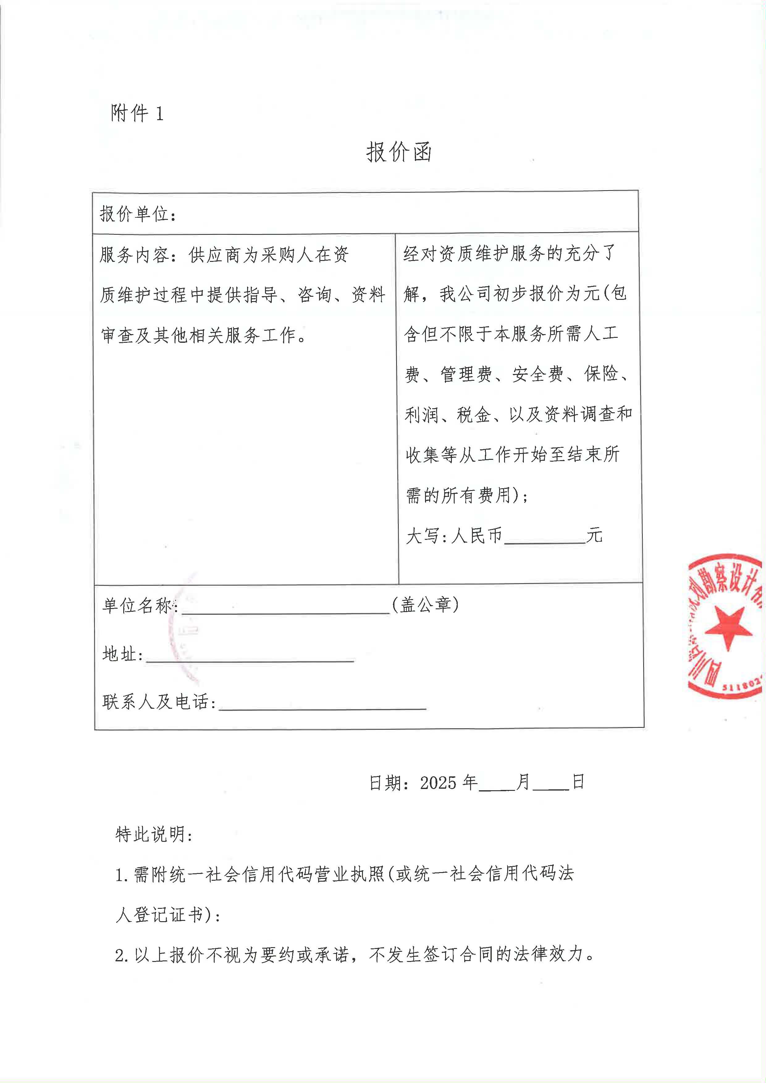 四川西康公路規(guī)劃勘察設(shè)計(jì)有限公司資質(zhì)維護(hù)服務(wù)采購(gòu)限價(jià)詢價(jià)函