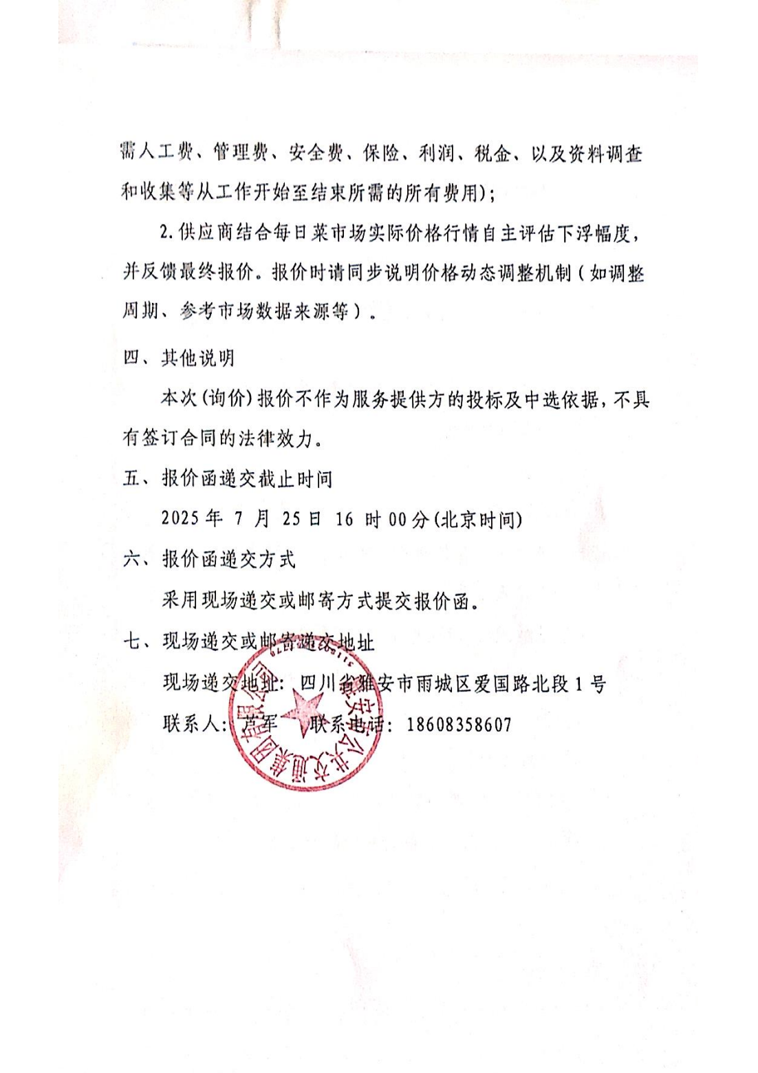 關(guān)于雅安市公共交通集團(tuán)有限公司食堂農(nóng)產(chǎn)品配送服務(wù)采購限價(jià)的詢價(jià)函