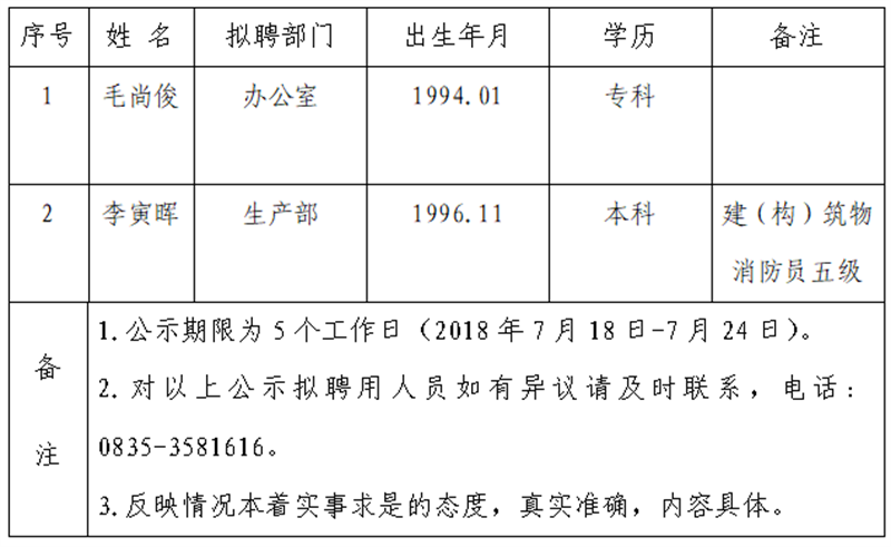 通過公開報名、資格審查、面試等程序,經(jīng)公司研究確定以下