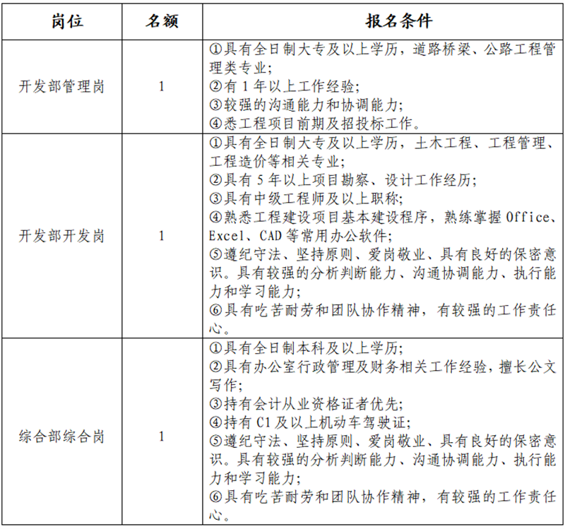 雅安交建集團(tuán)大興交通開發(fā)有限公司關(guān)于招聘工作人員的公告