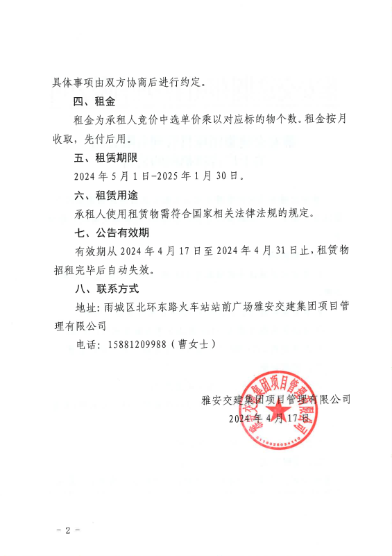 雅安交建集團項目管理有限公司關(guān)于廣告牌招租的公告