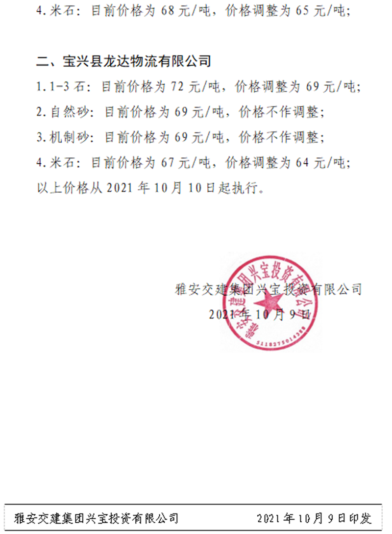 ÑŰ²½»½¨¼¯ˆF(tu¨¢n)ÅdŒš¹«Ë¾êP(gu¨¡n)ÓÚÕ{(di¨¤o)Õûɰʯ³ÉÆ·ÁÏäNÊÛƒr(ji¨¤)¸ñµÄ֪ͨ£¨2021.9.28£©